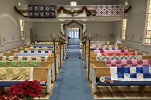 The Quilting Ministry meet Tuesdays at 10:30 AM upstairs in the Old Fellowship Hall. All are invited to join us.